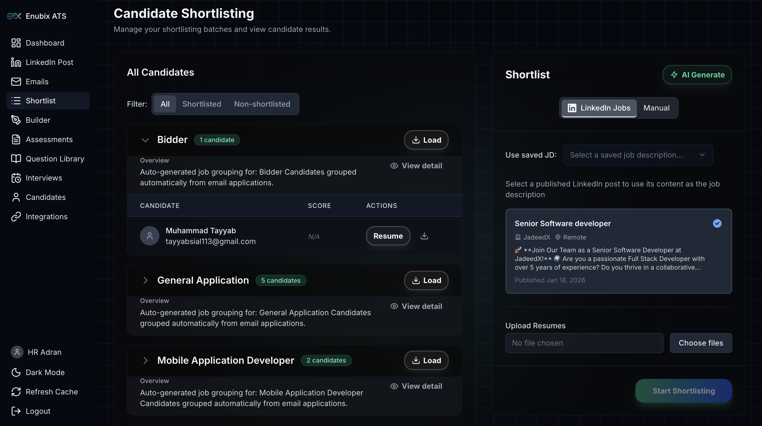 Added batch shortlisting and asynchronous background job orchestration with Inngest.